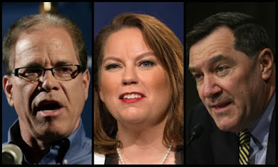 | L to R: Republican Mike Braun, Libertarian Lucy Brenton, Democrat incumbent Joe Donnelly |