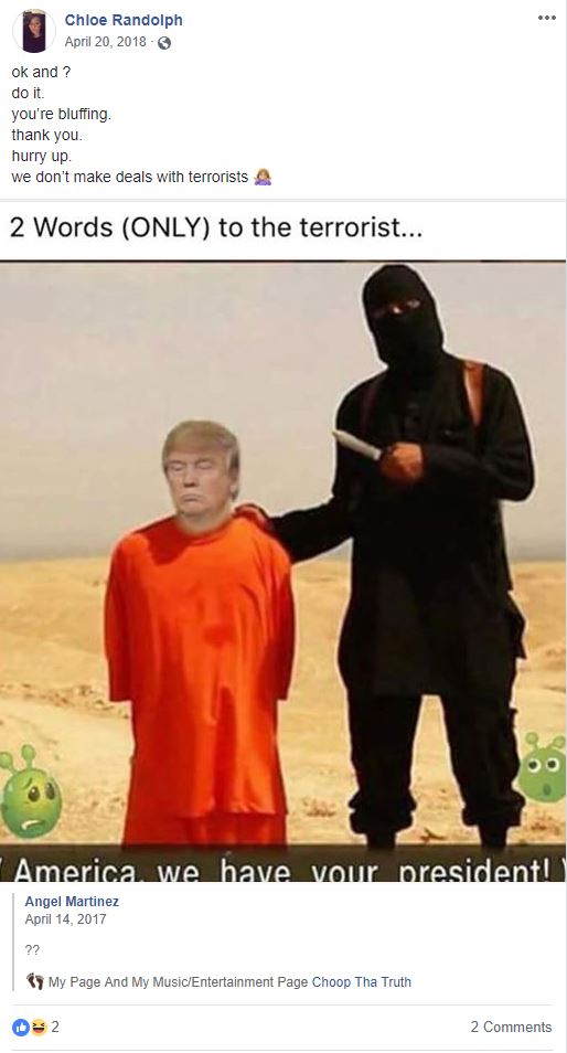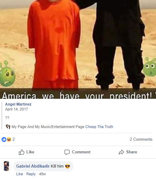 I guess the idea of some Muslim terrorist beheading the President of the United States is hilarious. But the comment below the picture was chilling, coming from “Gabriel Abdikadir” aka Mohamud Abdikadir.