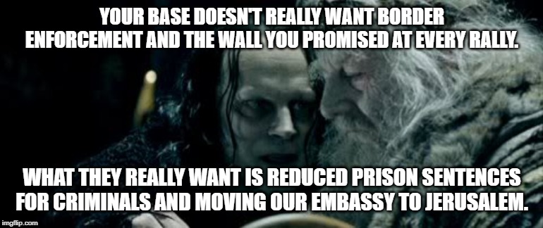 Dapper Don, still chasing that same black vote that Republicans have been chasing in vain for years. I am glad we elected Trump so his weasel of a son in law, Jared “Gríma Wormtongue” Kushner can make policies for our nation.
