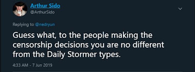 Poor Ned seems to think that disavowing The Daily Stormer will save him. It won’t. I don’t read DS because it is juvenile but I don’t think they should be censored. Thinking that it is OK to censor someone like Milo because they aren’t censoring me is foolish thinking. Once they ban Milo they will just keep moving the line of acceptable discourse and now that people like Ned have affirmed the principle that some speech is OK to suppress, now there really isn’t a defense for anyone being censored. If it is OK to censor people because of some really tenuous link to the Daily Stormer, then really no one is safe unless you self-police your speech to the point of being completely muted. Think homosexual marriage isn’t all that awesome? Nazi. Question pedophiles being given access to small children at public libraries? No different than the Daily Stormer. Gently suggest we do something to reduce the flow of illegal aliens across our southern border? You might as well be making lampshades from human skin.