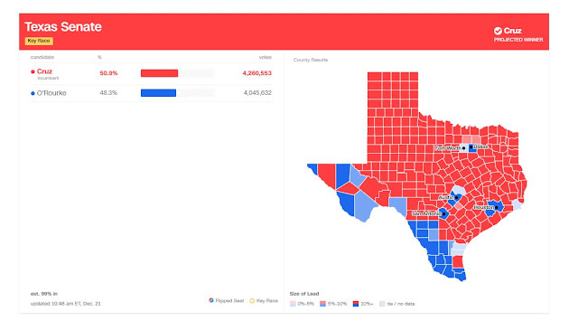 But then look at two years later when popular Senator Ted Cruz had a tough win against an absolute imbecile Robert “Beto” O’Rourke….