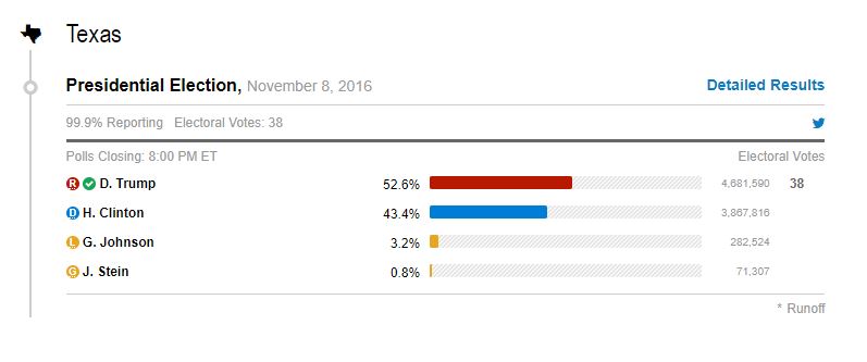 Last week I did a piece that looked at the very difficult situation for Trump in Florida in 2020: Do The Math. I don’t see a path to re-election for Trump without winning Florida again but now I want to look at Texas. Texas is the reliably Republican big state, not quite but almost off-setting California. Texas is a huge electoral prize and is generally not contested by Democrats, just as California is not contested by Republicans. In 2016 Trump defeated the Wicked Witch quite handily.