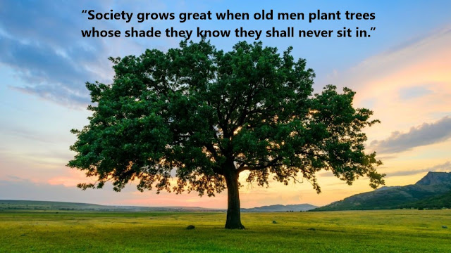 “Society grows great when old men plant trees whose shade they know they shall never sit in.”