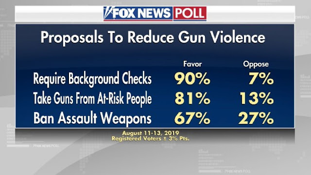 It is almost a given that Republicans will surrender on “red flag laws”. They will likely also surrender on expanded background checks for private gun sales. What is worse, it is likely this will get even broader once they start to “negotiate” with Democrats. Republicans “negotiators” give it up like a freshman sorority pledge at a frat kegger once they get behind closed doors. Happens every single time. I wouldn’t be surprised to see something like a ban on “high capacity” magazines or even a resurrection of the Clinton-era “assault weapons” ban. Fox News ran a poll right after the shootings and it was pretty grim: