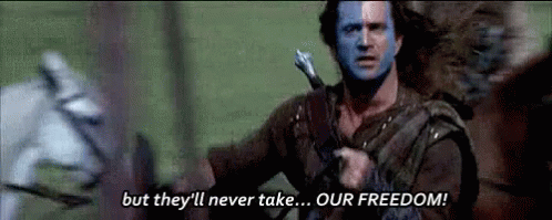I wonder if any young adults understand Braveheart today, if they grasp that it is worth fighting and dying for freedom instead of simply selling yourself into indentured servitude for some mindless entertainment and “security”?