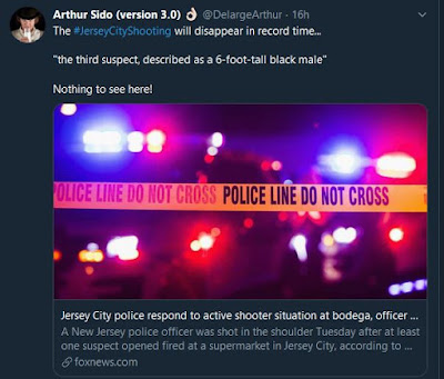Six people were killed in what sounds like a crazy gun battle in the redundantly named Jersey City, New Jersey. As of this morning, only the police officer killed was named. Two of the gunmen killed by police are not identified, although some reports say one of the men frequently posted “antisemitic” remarks online and it sounds like the gunmen were targeting a Jewish owned kosher food market. Yesterday initial reports suggested the third gunman was on the loose and there was a description: