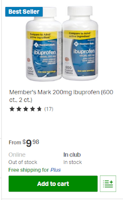 I started looking at a few items I wouldn’t mind stockpiling. The first was acetaminophen (aka Tyenol). You can usually buy two huge bottles for like $10 at Sam’s.