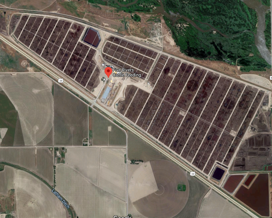 You can’t see it well but all of the brown rectangles are giant pens full of cattle. The whole area has a lovely odor of cow manure omnipresent. Even as big as these feedlots are, they are finite in size and you can only truck in so much feed and truck out so much manure.