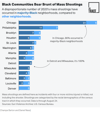 Black neighborhoods are hit hardest because black people are doing most of the mass shootings. The language makes it sound like these are just randomly happening in black neighborhoods. More: