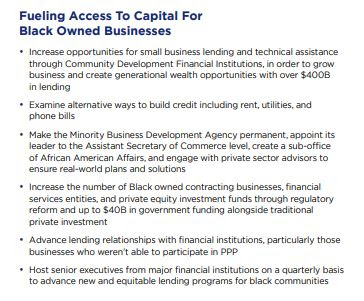 It makes it sound like the government can create a black owned business and that blacks don’t already have access to capital. As a former banker I can tell you unequivocally that they have the same access as Whites, Asians and mestizos provided they are credit worthy.