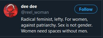 I suggested that she probably had no problem finding spaces without men. Just trying to be helpful. She replied and blocked me, no idea why, but I still got a screenshot of her response.