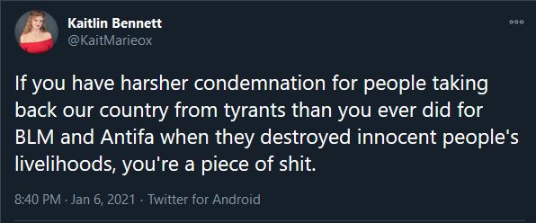Yesterday also exposed more of the people who are really working against us. Erick Erickson used to pretend to be “conservative” but yesterday was calling for the Capitol police to gun down the protesters.