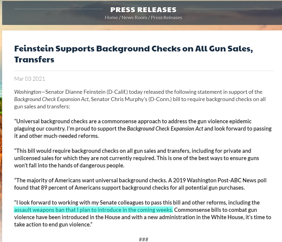 Expect to see her try to piggyback an “assault weapons” ban onto background check legislation.