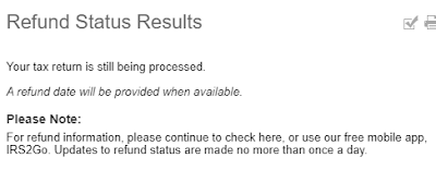 Our tax return is not that complex. A single W-2. Two Schedule Cs and related self-employment filings. We always use the standard deduction. The business income and expenses are pretty straightforward. Yes we have kids on our return but we have been filing a joint return for almost 30 years. You can see us adding kids one after another until we got to 8 kids and then watch them slowly dropping off as the older ones turned 18 and started to file on their own. It isn’t hard to figure out but for the last few weeks we and millions of tax-filers have been getting this message when we check the status of our refund: