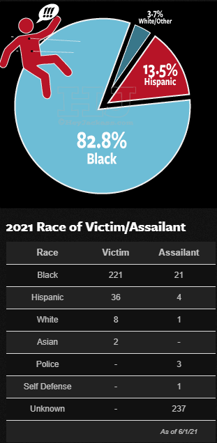 221 blacks murdered year to date in a single city, presumably all by other blacks. The total body count across the country is certainly well into the thousands at this point. What is the Usurper Joe doing about it? Rather than facing the current crisis happening right now, he is wailing and rending his garments about the “race war” in Tulsa, Oklahoma a century ago. A few hundred dead blacks in 1921 seem more important to Joe than a few hundred blacks dead in 2021.