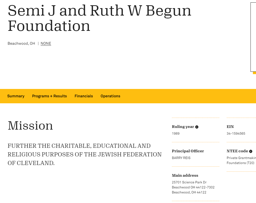 The outfit he runs, the “Begun Center for Violence Prevention Research Education at Case Western Reserve University” is a pretty standard bullshit outfit apparently named after the same people as the Begun Foundation, listed as a “partner”. The longer name is the “Semi J and Ruth W Begun Foundation”. This is from their Guidestar page: