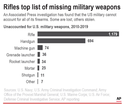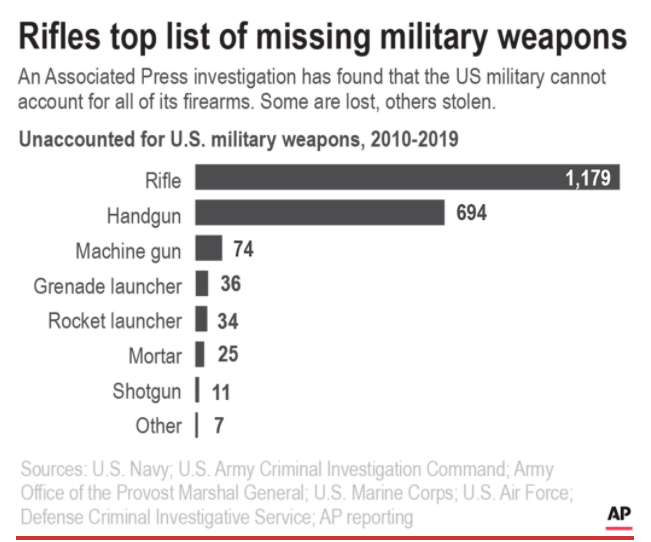 In the first public accounting of its kind in decades, an Associated Press investigation has found that at least 1,900 U.S. military firearms were lost or stolen during the 2010s, with some resurfacing in violent crimes. And that’s certainly an undercount.