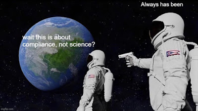 The cognitive dissonance is mind blowing. You must get a vaccine, but that doesn’t really do anything. Even with the vaccine you must wear a mask, even though the mask doesn’t do anything. We are a year and a half into the “pandemic” and people seem to still be getting the Chinese coronavirus even after we socially distanced, locked down the country, forced people to wear masks and have been bribing people to get “vaccinated”. It almost seems like all of it was bullshit or something.