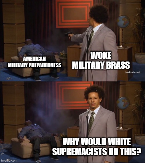 BCE is of the opinion that the brass is trying to provoke some sort of response from the pissed off grunts. My take in a comment was that it could be a part of the move to create the image of widespread “White supremacism” running rampant in the ranks, as if that would be a bad thing given that the most lethal fighting force we ever unleashed back in Europe in the 1940s was full of men who top to bottom would be considered “White supremacist’s” by today’s standards. Push some PFC into popping a star and of course his social media would be littered with MAGA and III% stuff, and then use that as a further excuse to purge the ranks of regular White guys. Replacing Nebraska farm boys who grew up hunting with scrawny fags and obese trannies won’t be bad for morale or preparedness.