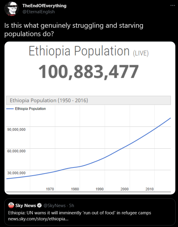 The same dipshits holding “Immigrants Welcome!” signs are also endlessly yapping about “climate change”, never once making the connection between exploding populations and the need to feed those populations.