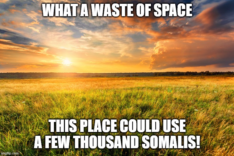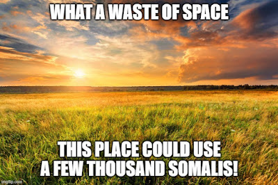 Sure it kind of looks like there is a lot of empty space in the U.S.. Why not fill it with Somalis?!