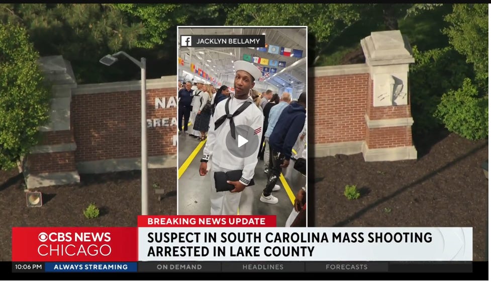 A U.S. Navy sailor was arrested in Illinois Thursday as the suspect in a mass shooting over Memorial Day weekend in South Carolina that wounded at least 10 people.