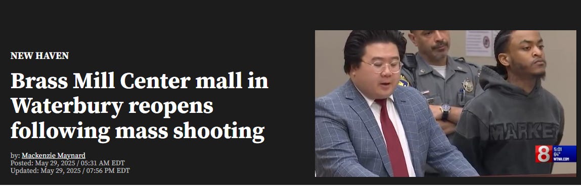 I was waiting for a suspect to be announced in the Brass Mill Center mass shooting in Waterbury, Connecticut (33% White, 20% black, 40% mestizo) where five people were shot but now they have named the suspect so here we go…