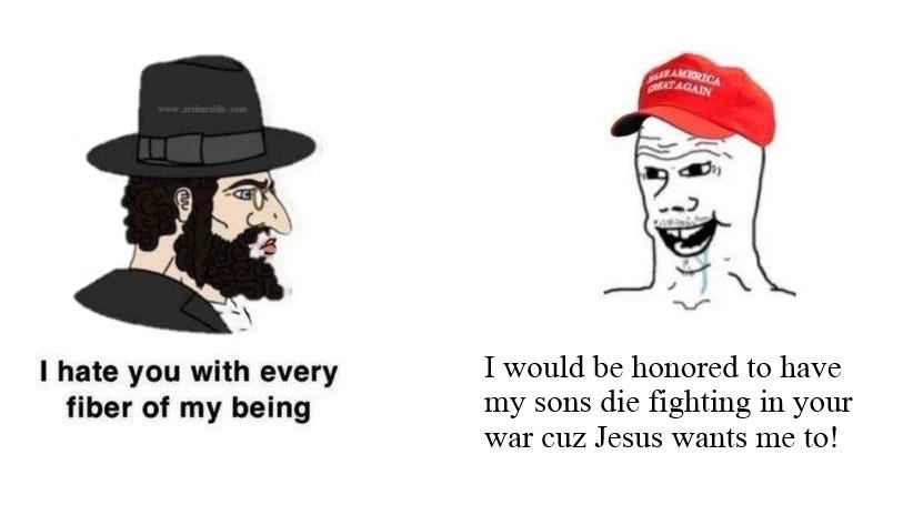 And, if this goes fully ‘tits up’ will Trump the Peacemaker be committing the U.S. to boots on the ground? ‘Cause, it’s a little-known secret that Netanyahu has always been willing to “fight to the last goy.”