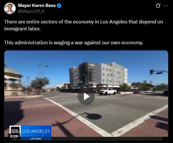 Miller was replying to this Tweet from L.A. “Mayor” Karen Bass, the dumb bitch that was overseas when L.A. homes were burning and then was making excuses when rioters were burning more of the city.