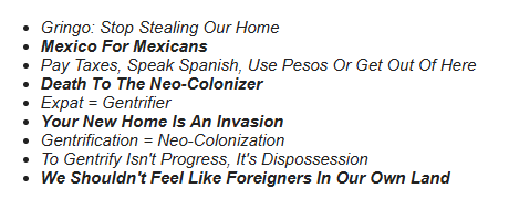 - Americans living in Mexico legally is gentrification and a colonizer invasion.