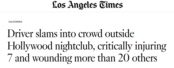 You might have seen a blurb about a driver running his car into a crowd waiting outside of a nightclub in L.A. who was subsequently shot by someone in the crowd.