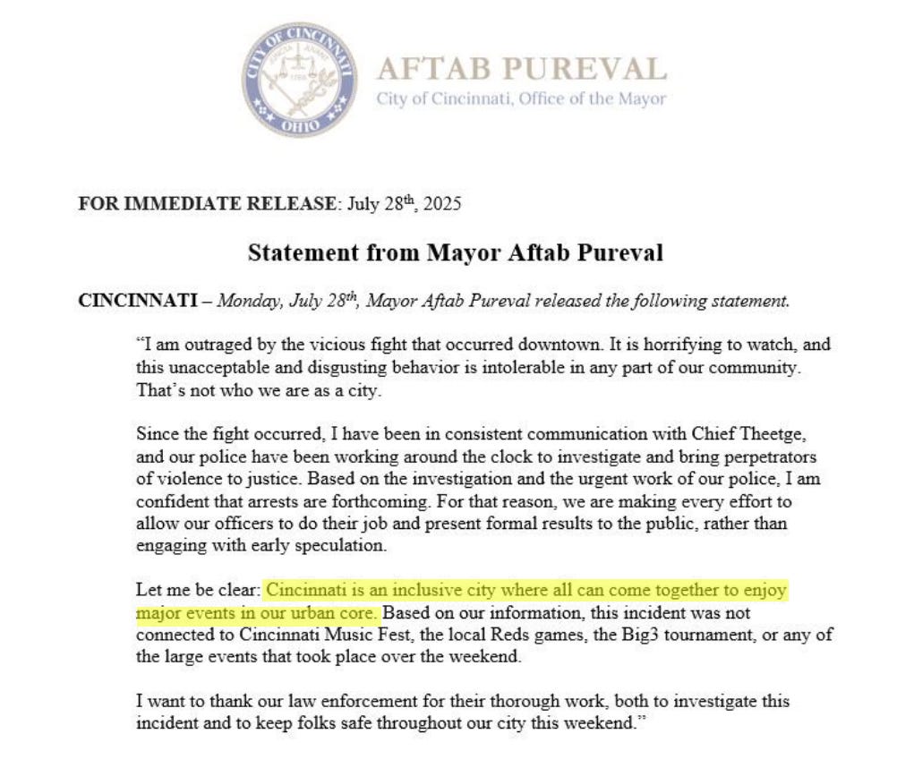 Ok, to begin with, contrary to the street sheeeit pajeet’s tardily released public statement regarding the nature of Cincinnati, this is, in point of fact, exactly “who you are” as a city; just another racially atomized blue shithole. One where (as usual) the nig tribe is following it’s natural behavioral directives for it’s own collective benefit, without any real interference from the government that is responsible for preventing and punishing such behavior, because it has declared itself to have a monopoly on force (just as everywhere else). And yet, while wielding such monopoly, still refuses to use it to tamp down this sort of fuckery that is clearly racially motivated. There is no colorblindness, so spare us all the MLKesque poopy talk. No one who isn’t a self deluding moron buys that crap anymore.