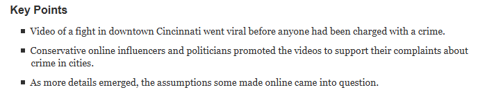 Meanwhile some chick named Erin Glynn who covers “regional politics” for the Cincinnati Enquirer and an “investigative reporter” named Dan Horn are lamenting that people saw this video online without “context”: Politics, race and crime: Why a fight in Cincinnati went viral on social media