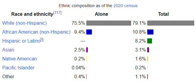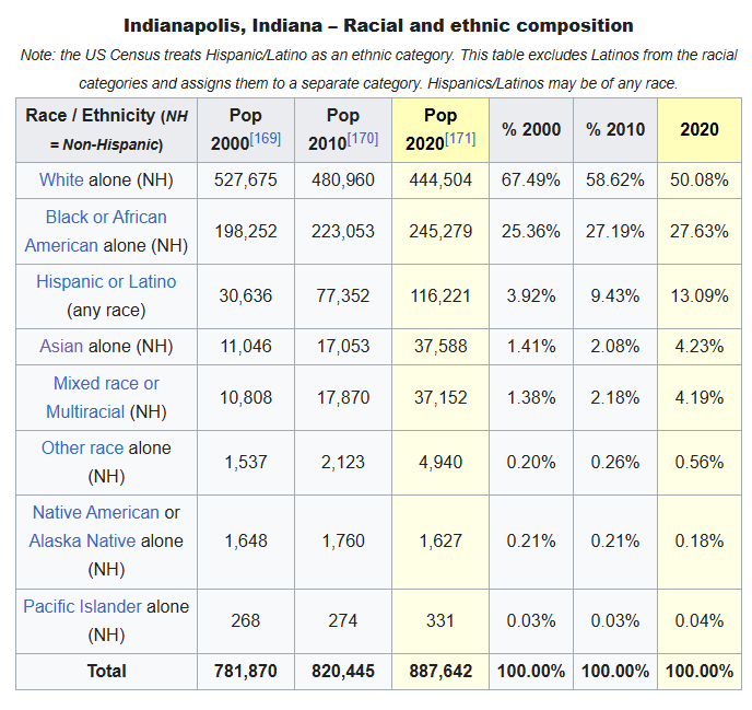 …although dropping fast and blacks are still under 10% when you take out “Hispanic blacks”. Indianapolis is a different story entirely…