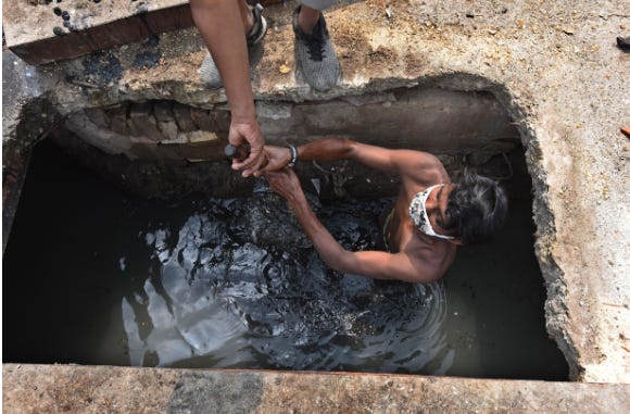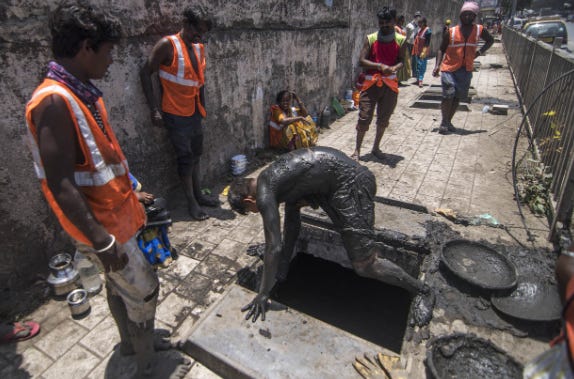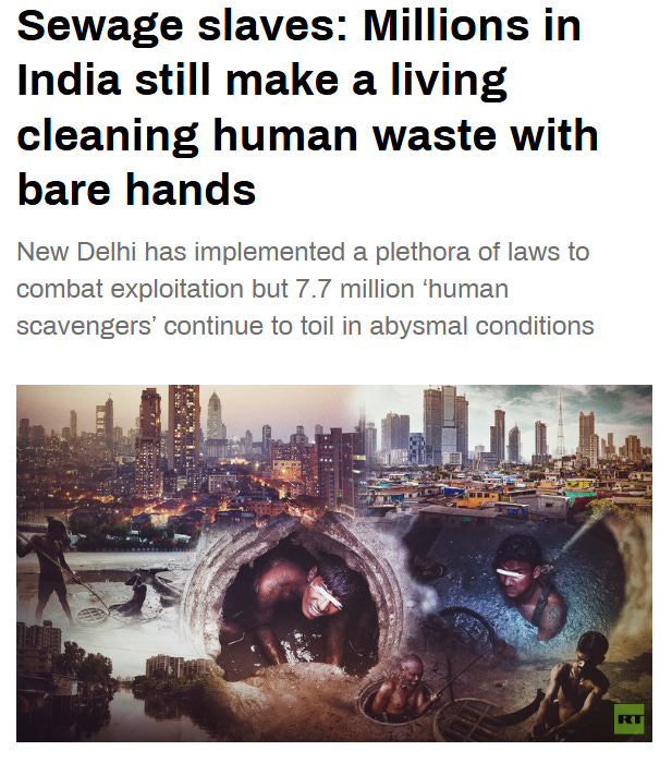 Imagine a society where millions of young people strip down, jump into a enclosed space full of Indian crap and then empty the shit out by the bucket-full. They stand submerged in shit for 10-12 hours a day to make six bucks.