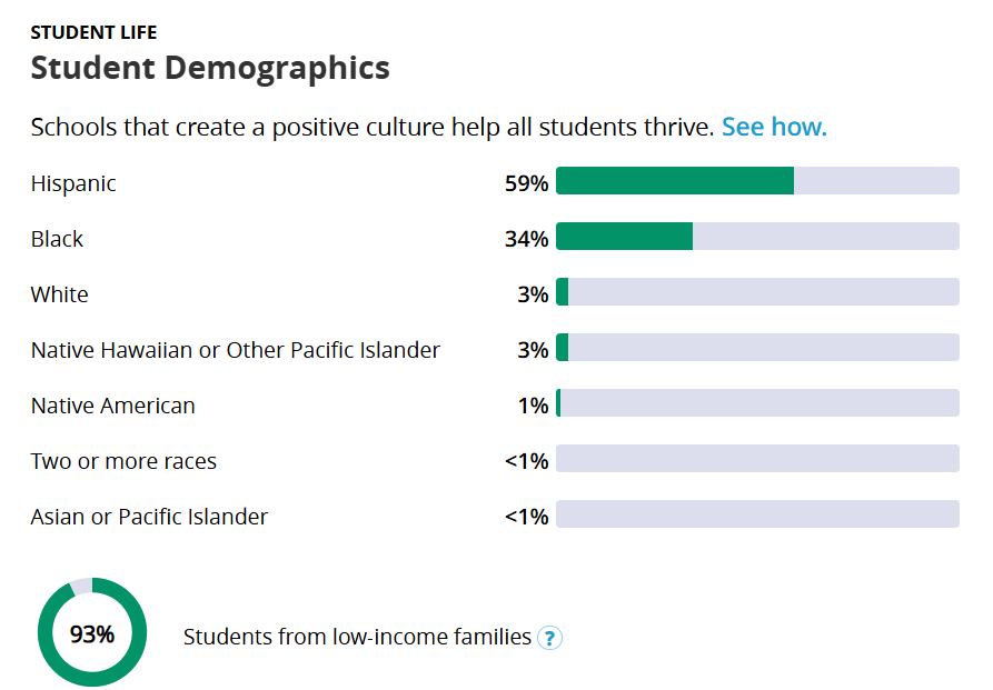 A Glock in .45 ACP with a “switch”? You let that thing rip and the bullets are going to go all over creation. In what will come as a surprise to all of you, his “school” with the weird name of “Association House” is ranked 1 out of 10 by Great Schools with a graduation rate of around 38% and of course demographics that look like this: