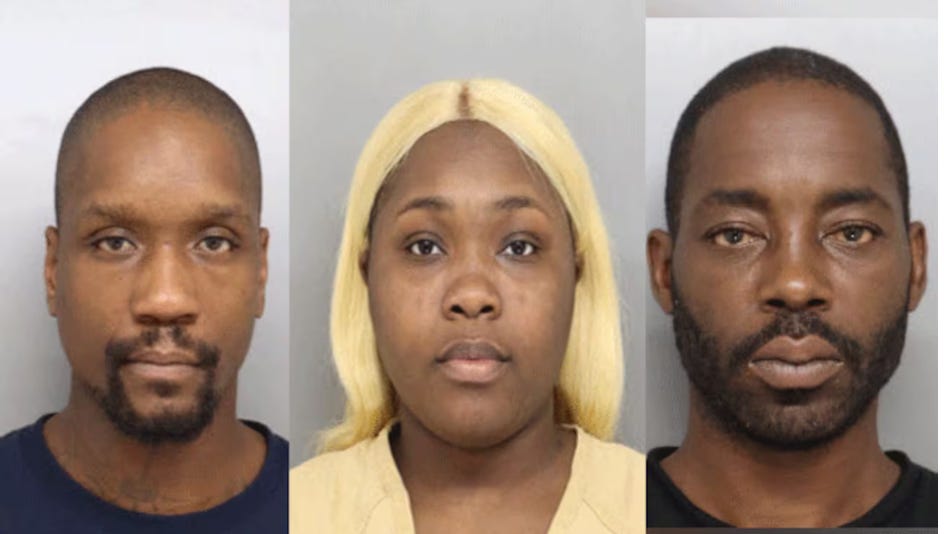 Nice try. There are three or four people already under arrest, the ones I found quickly are pictured below: Montianez Merriweather (left), DeKyra Vernon (center) and Jermaine Matthews, the Scaredy Cat Schizophrenic (right).