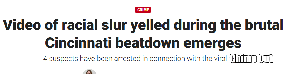 Back to the article, appearing on Fox News yesterday with the headline: Video of racial slur yelled during the brutal Cincinnati beatdown emerges.