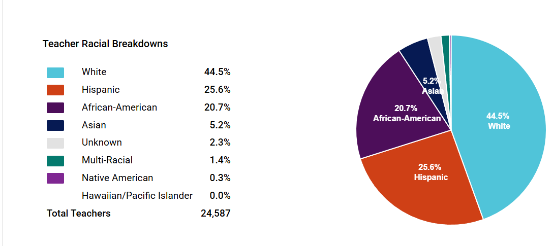 As an aside I thought this was interesting. While Chicago Public Schools are barely 11% White and are 46% mestizo and 34% black, look at the teacher demographics: