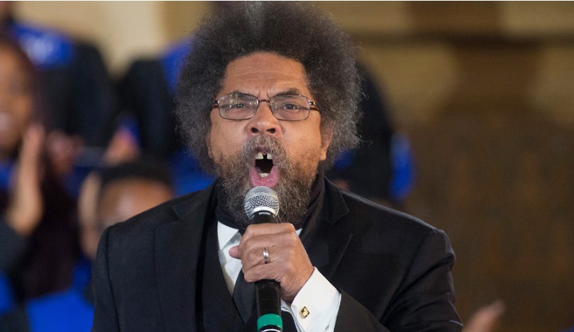 This dude Cornell West has been a faux intellectual for over 30 years. I remember seeing his niggardly visage (and bitchin’ nappy rooted fro) doing televised symposia on C-Span back in the early 90’s, and could tell he was a poseur when I was still in high school then. His verbal stylings are what NPR would sound like if all the on air “talent” was black. Thanks, I’ll take a hard pass.
