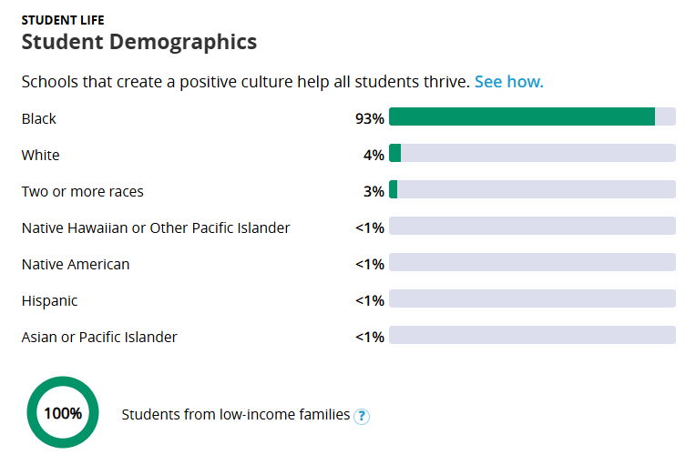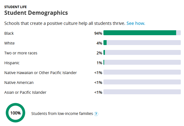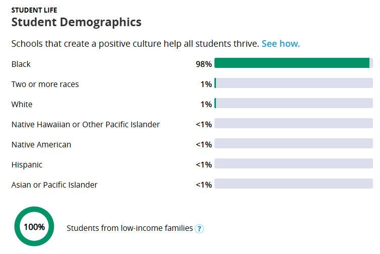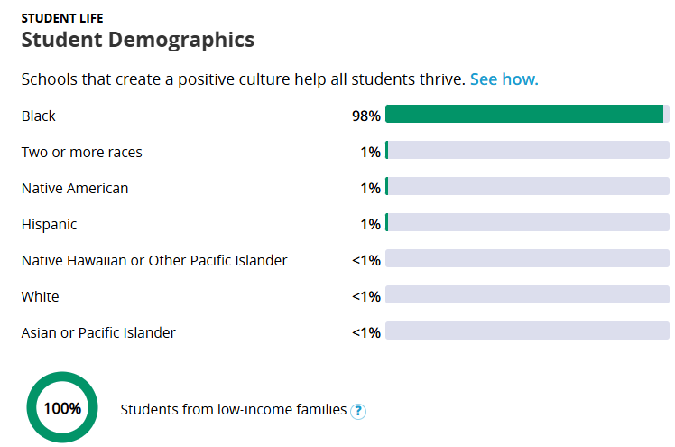Both schools 93%+ black and 100% low income. They sound like delightful schools. Leland itself is to the surprise of no one an absolute shithole that was put under curfew in May because it was so violent.