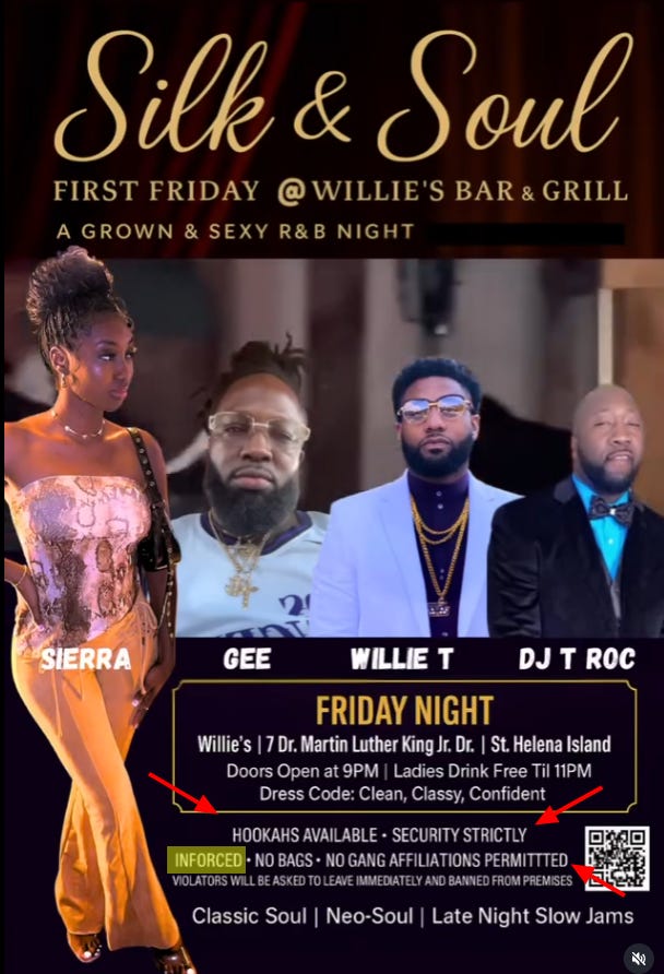 Someone styling hisself “dj_troc” on Instagram posts frequently about performing at Willie’s on St Helena Island on “Dr.” Martin Luther King Jr. Drive…