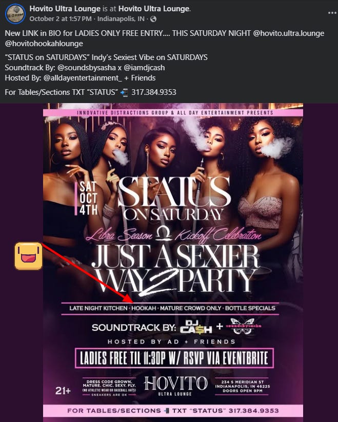 This was the Instagram post for Saturday night, I guess all that “status” and “mature crowds”…..