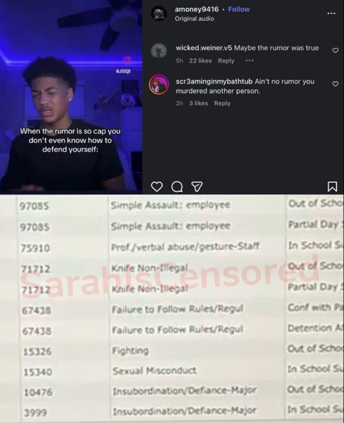 The murder of Andrew Meismer was absolutely preventable because Aundre Matthews had no business being in that school or any other but I would bet Aundre had a Individualized Education Plan and was classified as having a “disability” because he was a discipline case and therefore the school could not legally kick him out thanks to yet another allegedly well meaning law that has been turned into a license to kill. His disciplinary record was leaked and posted by Sarah Fields: