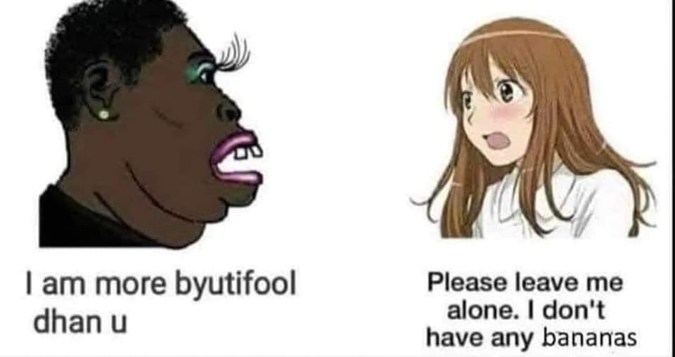 What is really bizarre is that despite all of the evidence black women have somehow convinced themselves that they are not only not ugly as sin but are in fact beautiful. It is always a good time to roll out this meme….