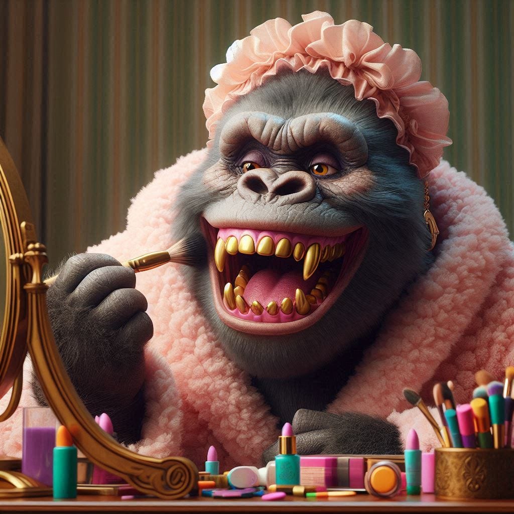 The only trick the negro has mastered is GibsMeDat. Proclaiming yourself Queen or Luscious is simply another way of taking something that belongs to others, aka “Gibs”.