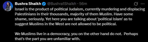 It is also critical to point something out. Bushrag Shake is some sort of reality TV type, and how could we survive without those, but she is considered mildly controversial because of her “antisemitism”. Just about an hour ago she posted this: