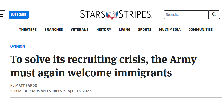 In 2023 I wrote a piece about the push to recruit “immigrants” as soldiers to make up for the shortfall of new grunts: Like Hessians But With Burritos Instead Of Bratwurst