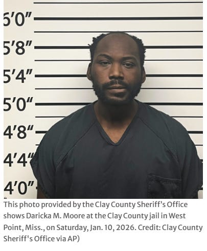 The suspect, Daricka Moore, 24, was arrested and charged with first-degree murder, which will be upgraded to capital murder with additional murder charges, Clay County Sheriff Eddie Scott said at a Saturday news conference….