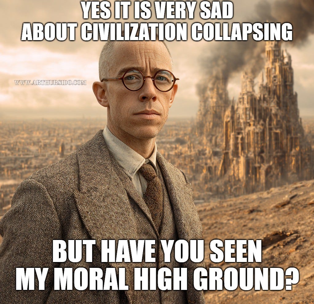 The same people who gleefully cheered when Charlie Kirk was shot, when Trump was arrested and nearly assassinated are now demanding that everyone weep over the death of some bitch who personified FAFO, at least for a few seconds. It is nothing to be proud of to be more moral than an amoral person.